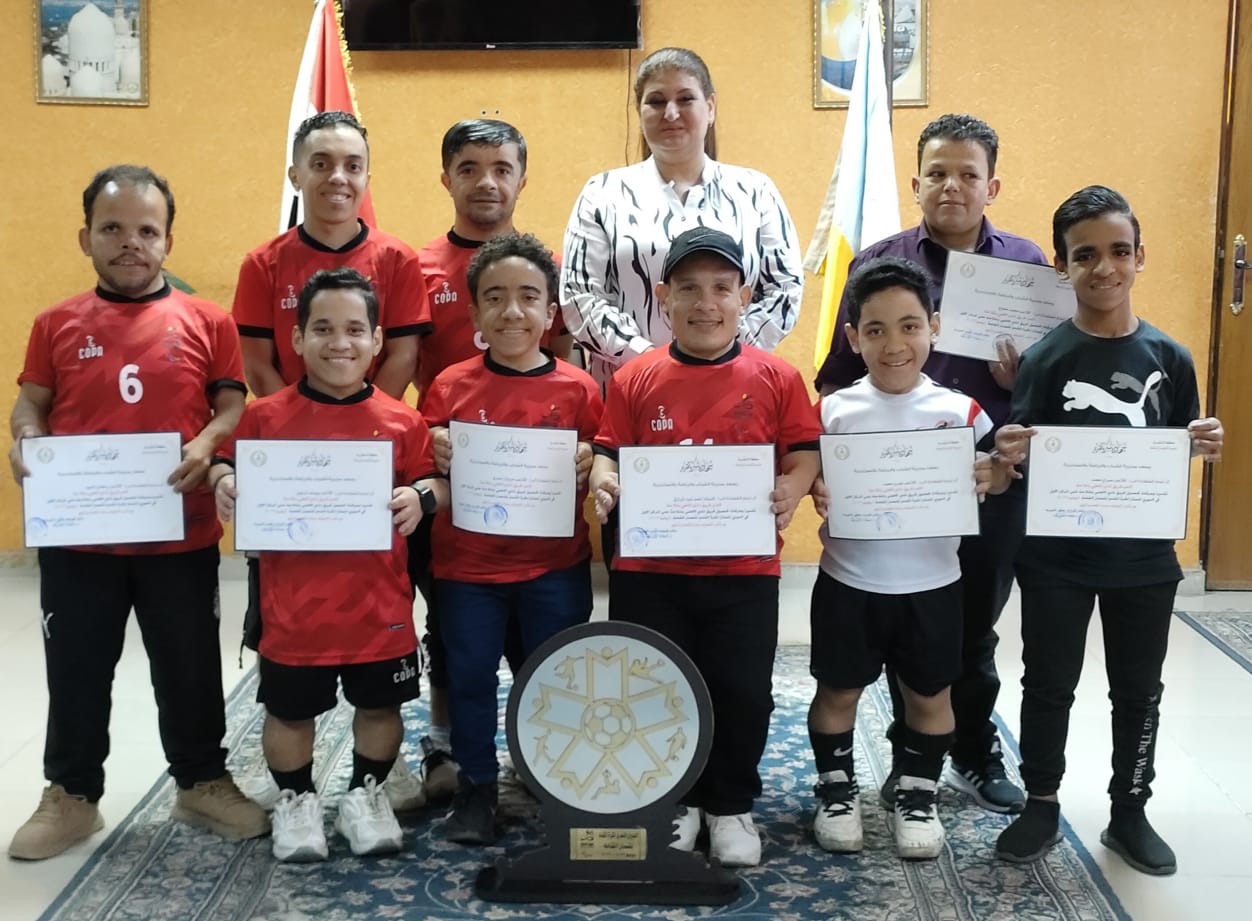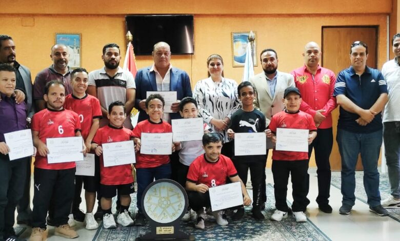 وكيل وزارة الشباب والرياضة بالاسكندرية تكرم فريق نادي الأهلي بالملاحة لقصار القامة لحصولة علي المركز الاول في