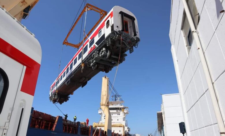 وصول 15 عربة درجة ثالثة مكيفة جديدة قادمة من المجر الى ميناء الإسكندرية