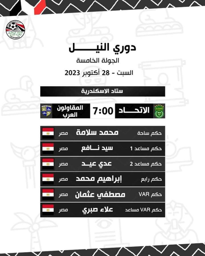 إذ يستضيف  سيد البلد نظيره نادى المقاولون العرب في إطار مباريات الأسبوع الخامس من الدوري المصري الممتاز موسم 2023– 2024، على إستاد الإسكندرية الساعة 7:00 مساء.