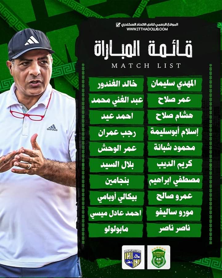 وأتم الفريق الأول لكرة القدم بالأخضر، تحضيراته بخوض تدريبه الأخير الجمعة، على ملعبه بسموحة، إذ اختار طارق العشرى، المدير الفني، قائمة الفريق المكونة من: