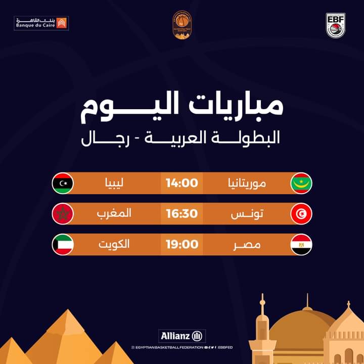 منتخب مصر يلتقي شقيقه منتخب الكويت في تمام الساعة السابعة مساء، على أن تكون المباريات مذاعة عبر قناة الاتحاد المصري لكرة السلة عبر قناة “يوتيوب”.