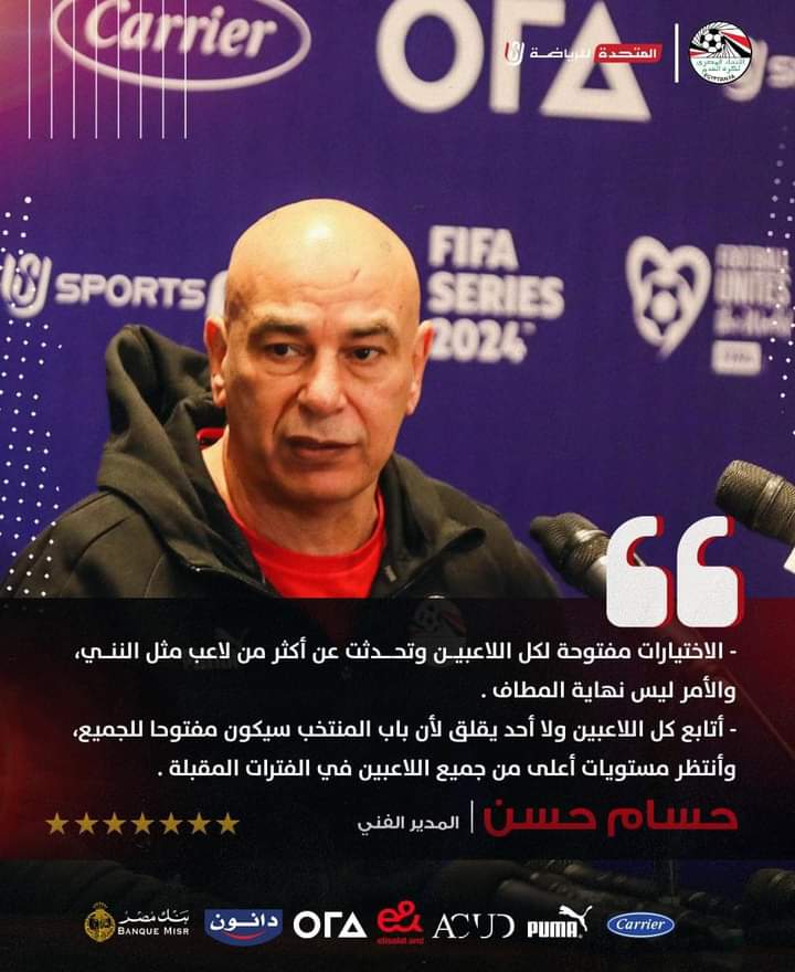 تحدث المدير الفني للمنتخب المصري الأول، حسام حسن، عن مواجهة نظيره النيوزيلندي في افتتاح كأس “عاصمة مصر” الإدارية الجديدة المقرر لها مساء الجمعة المقبل، باستاد القاهرة الدولي.