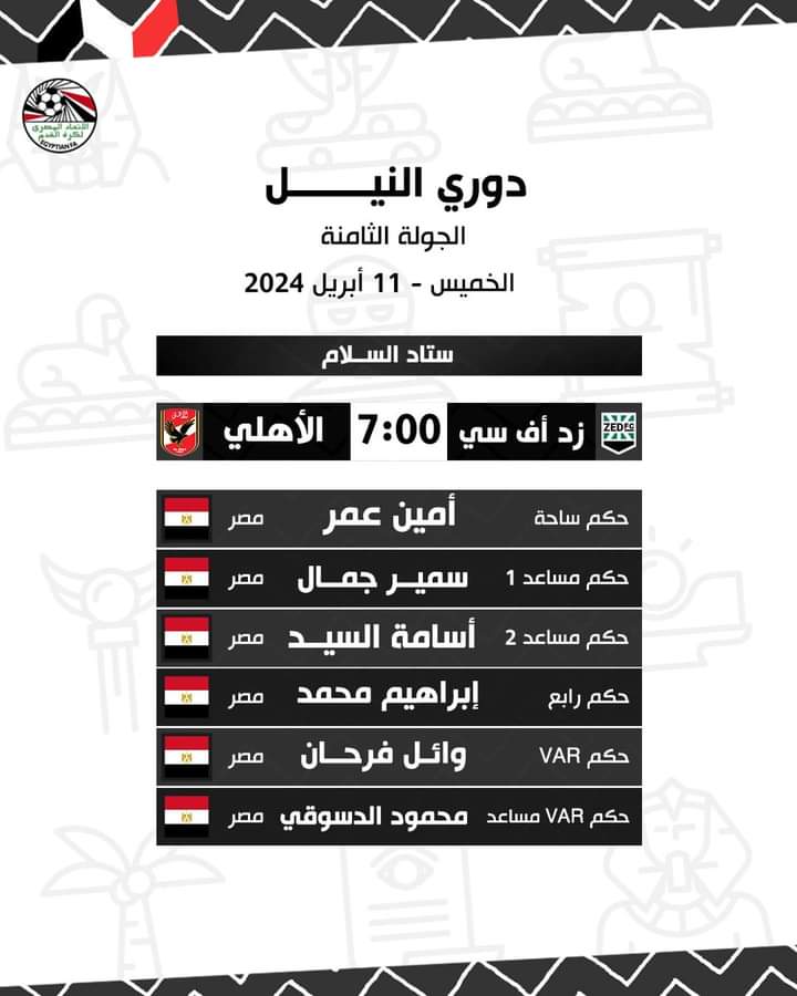 ويدير المباريات أطقم حكام بقيادة كل من: