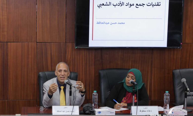 وأشار “عبد الحافظ” إلى أهم تقنيات جمع التراث الشعبي، والفرق بين مفاهيم الجمع الميداني والتقنية والأداة والوسيلة والأسلوب.