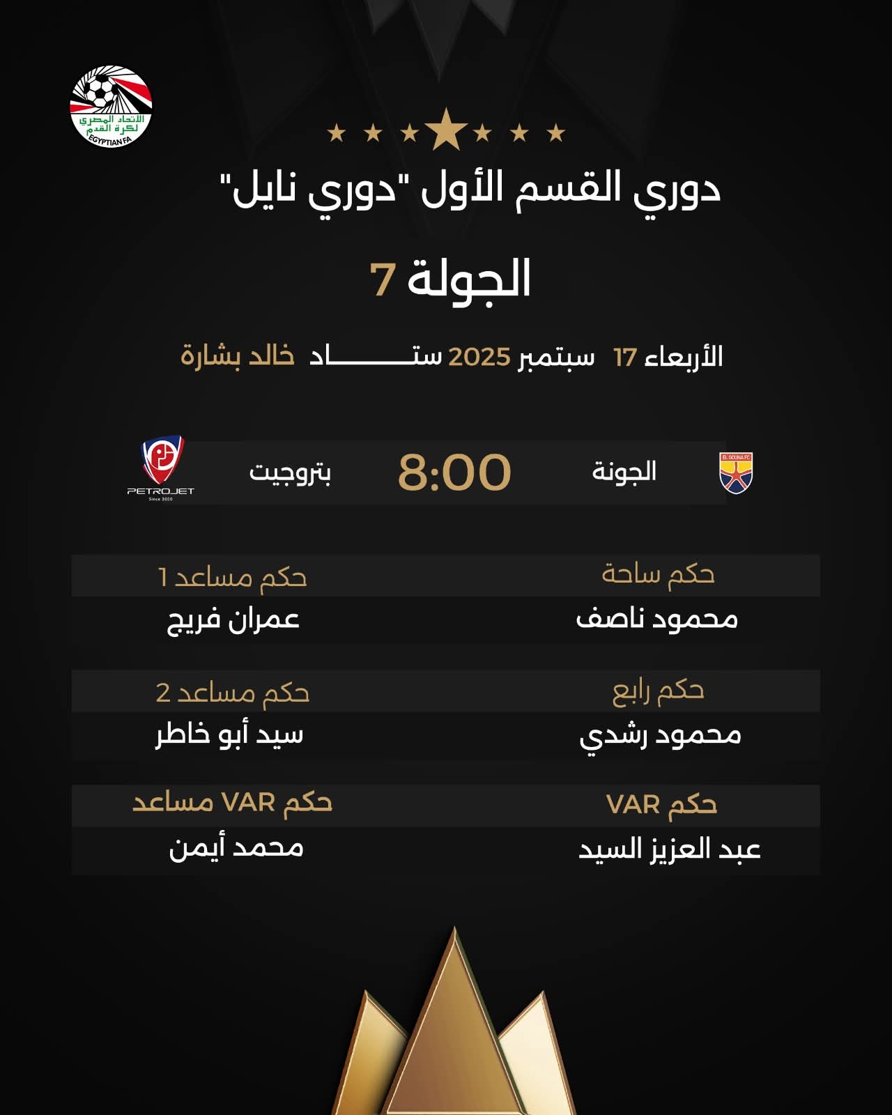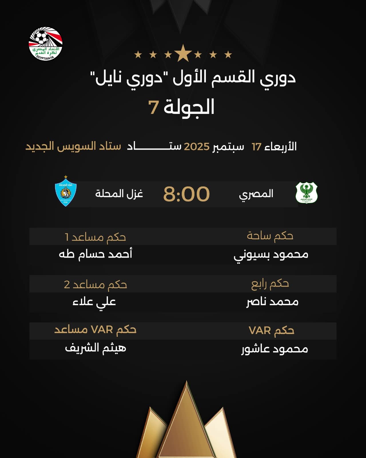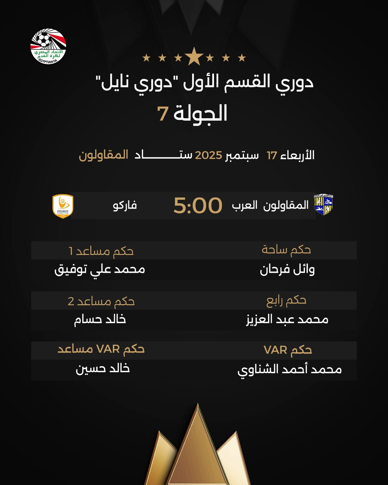 أعلنت لجنة الحكام، أطقم مباريات اليوم الأربعاء، في الجولة السابعة من دوري القسم الأول “دوري نايل”.