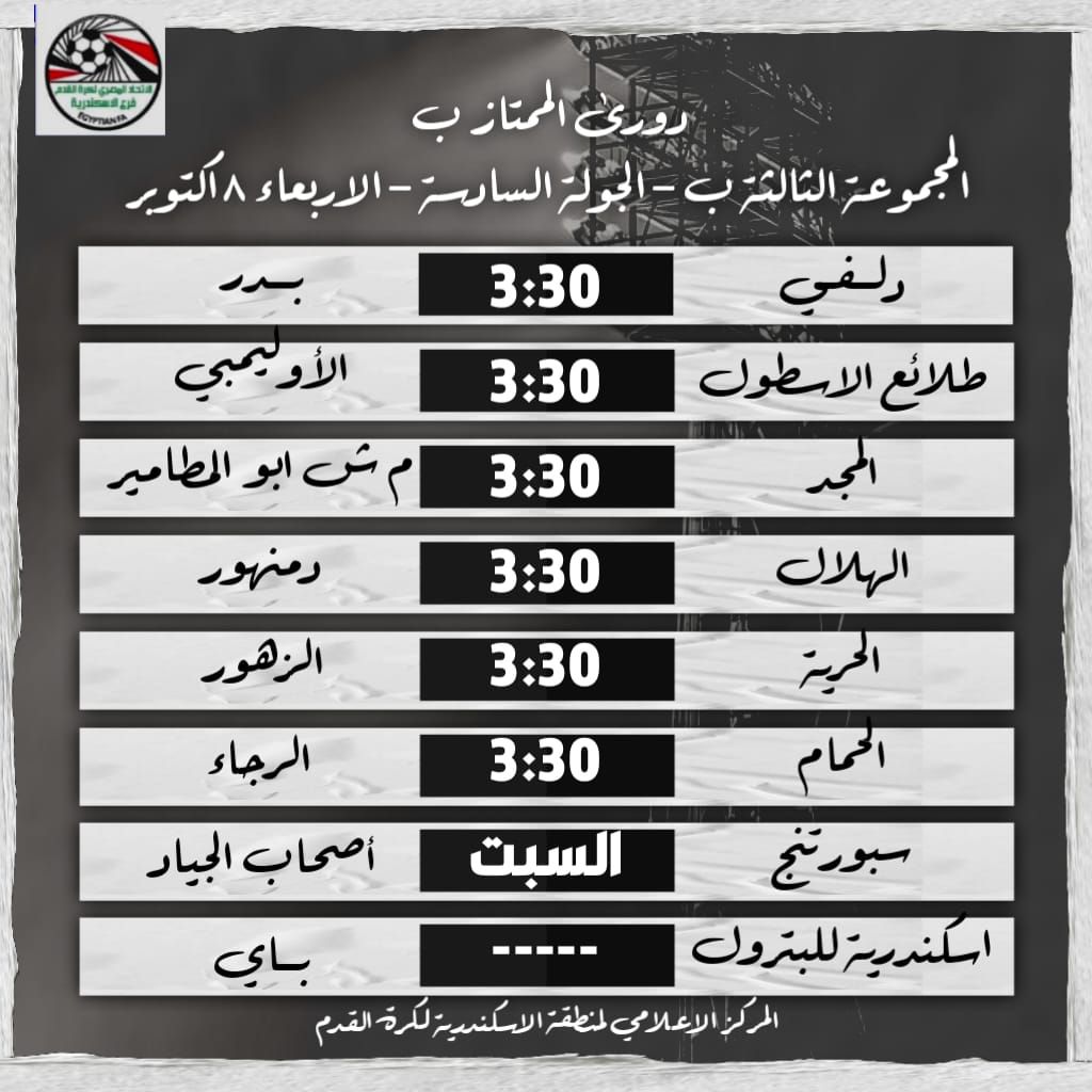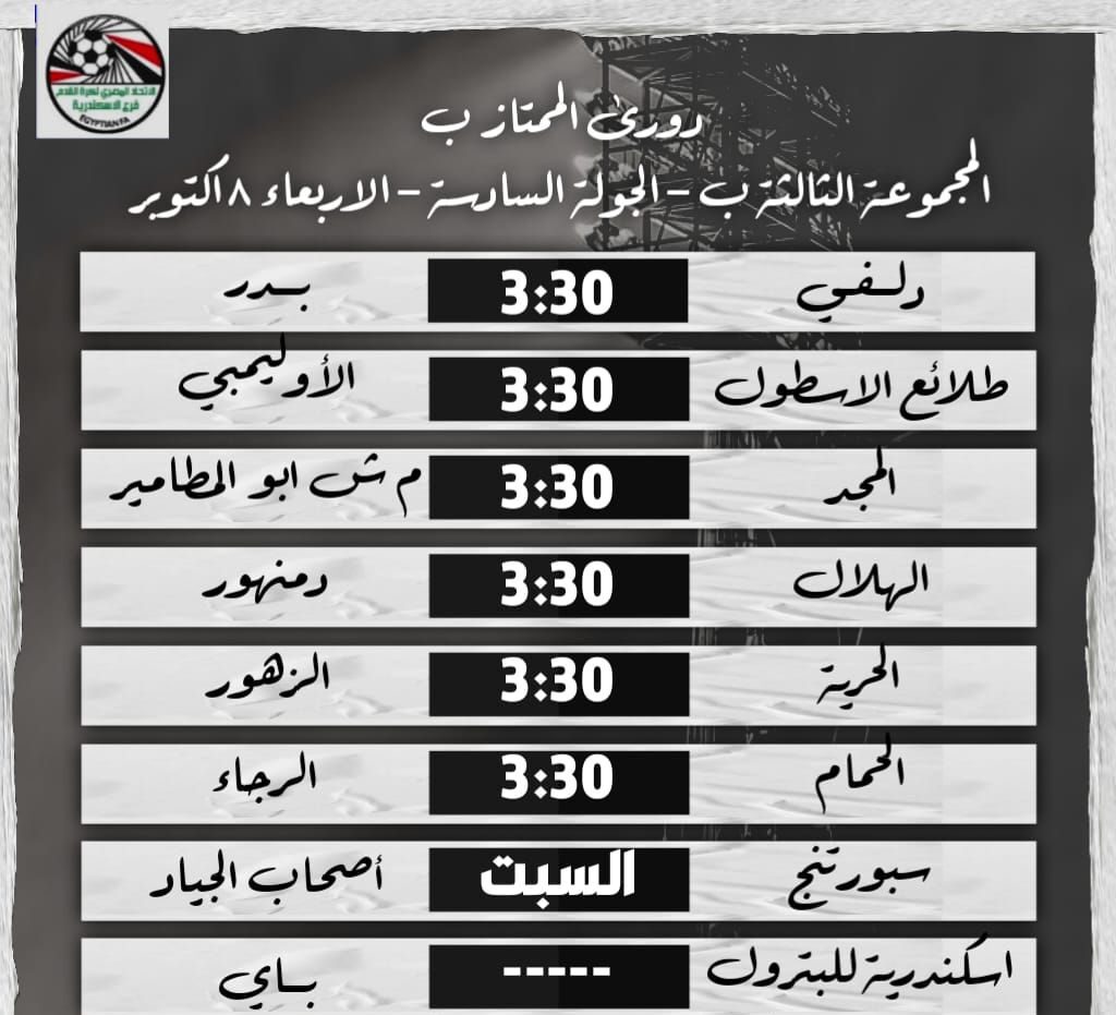 دورى الممتاز “ب”| الأوليمبي و دلفي و المجد يتحدون الأسطول وبدر و أبو المطامير بالثغر