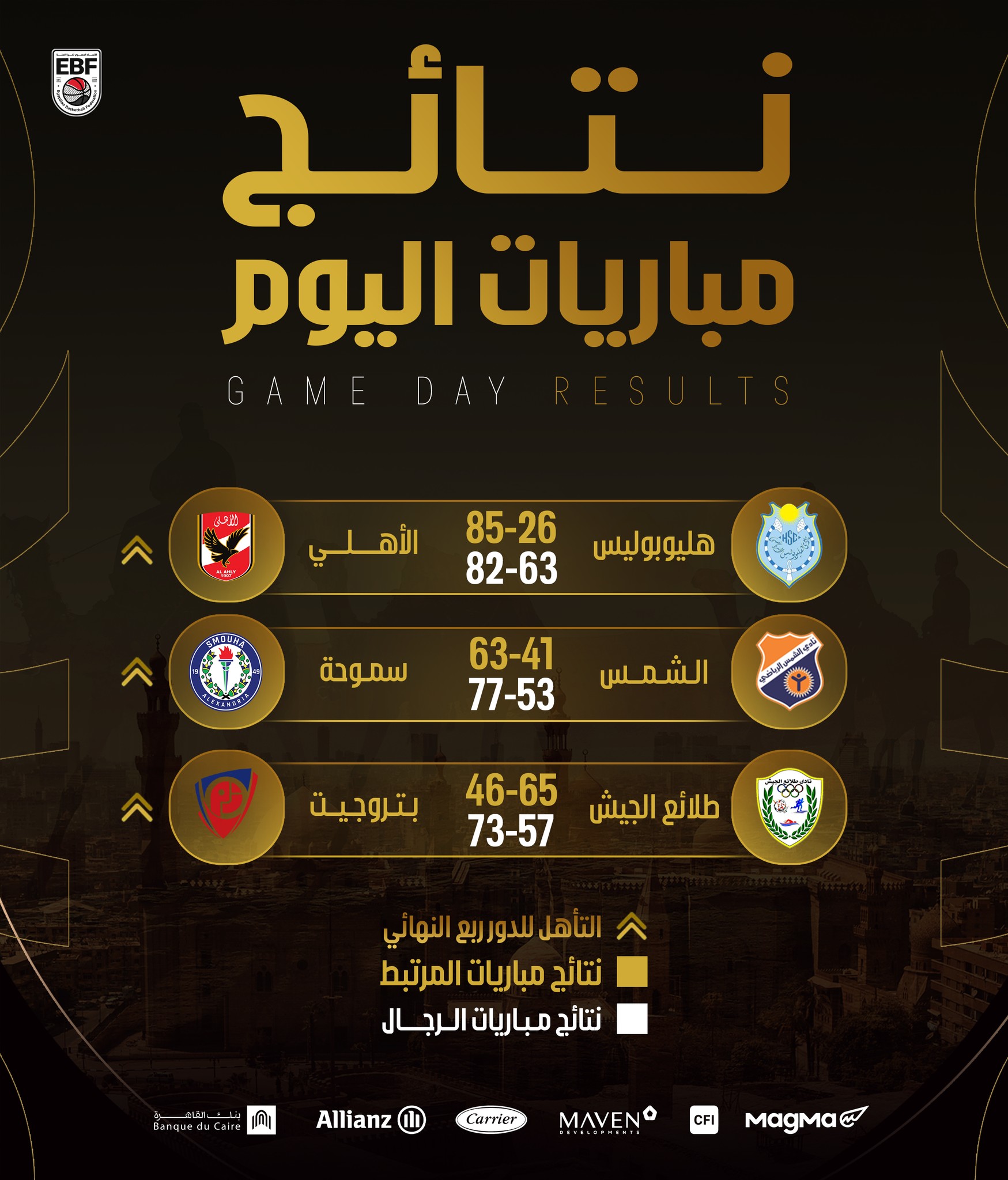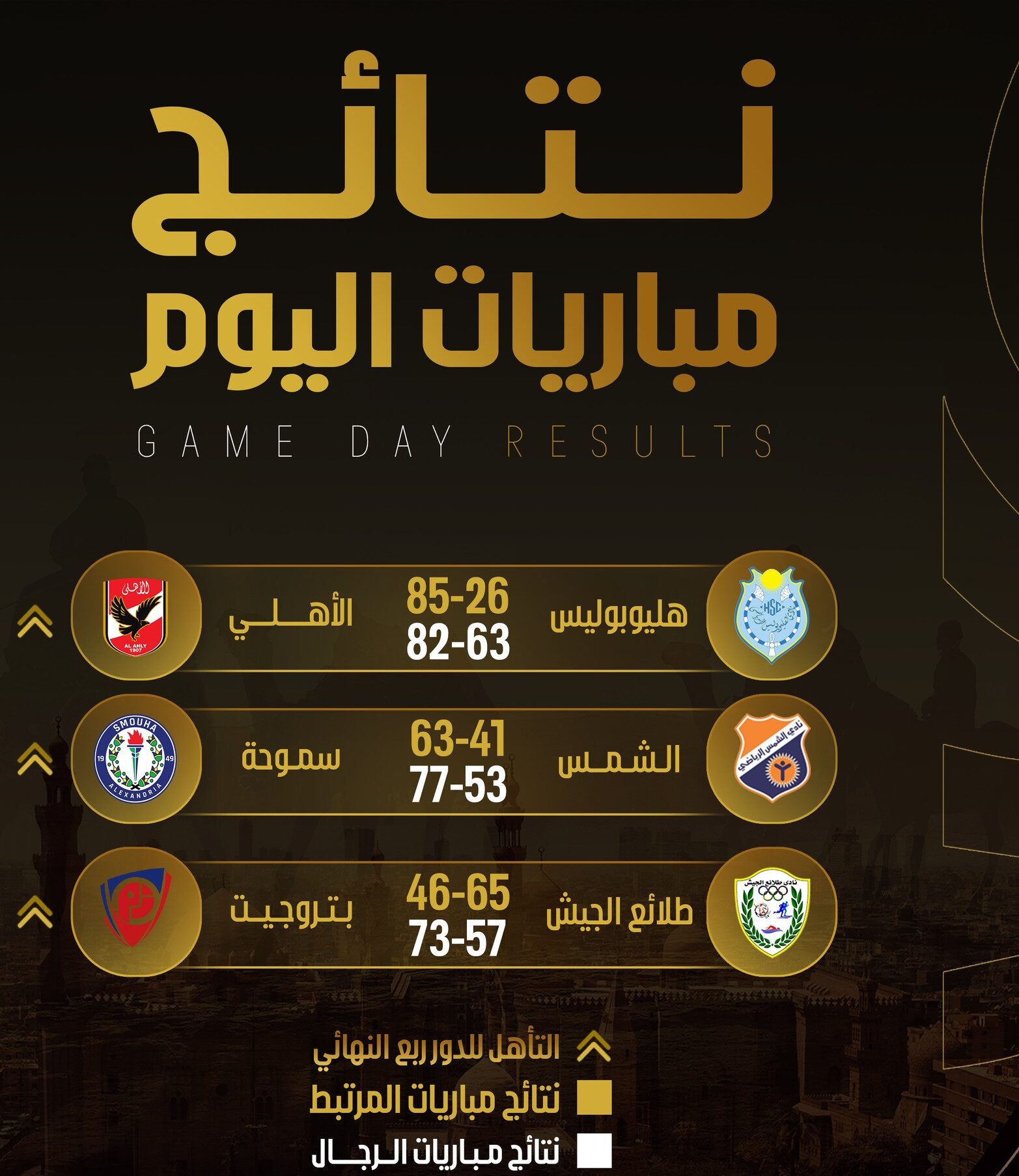 وتغلب فريق شباب المرتبط 18 سنة بالنادي الأهلي، على هليوبوليس بنتيجة 85-26، ضمن منافسات إياب ثمن النهائي. وكانت مباراة الذهاب قد انتهت، بفوز الأهلي على هليوبوليس بنتيجة 79-50، بالإضافة إلى انتصار فريق المرتبط تحت 18 عامًا بنتيجة 83-33.