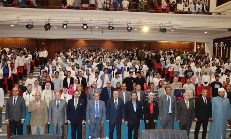 وأوضح الدكتور قنصوة أن التحديات الراهنة تتطلب إعداد جيل متعلم وواعٍ قادر على تحمل المسؤولية، مشيرًا إلى أن مؤتمر السلام الذي عُقد في شرم الشيخ في أكتوبر 2025 يمثل انتصارًا جديدًا للإرادة المصرية ودورها الريادي في إرساء السلام بالشرق الأوسط. كما أكد حرص الجامعة على تنظيم الندوات التثقيفية التي تسهم في رفع الوعي، وبث روح الانتماء، وتصحيح المفاهيم المغلوطة، بما ينعكس إيجابًا على بناء العقول وتنمية الولاء للوطن.