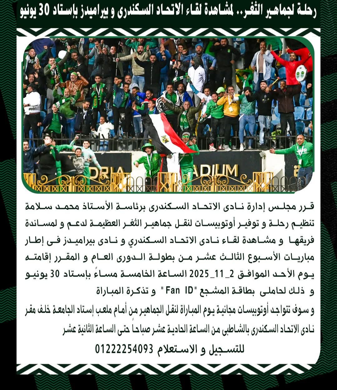 كذا تحركت ظهر اليوم، حافلات تقل جماهير الثغر إلي القاهرة في رحلة لمشاهدة لقاء الاتحاد السكندرى و بيراميدز بإستاد 30 يونيو.
