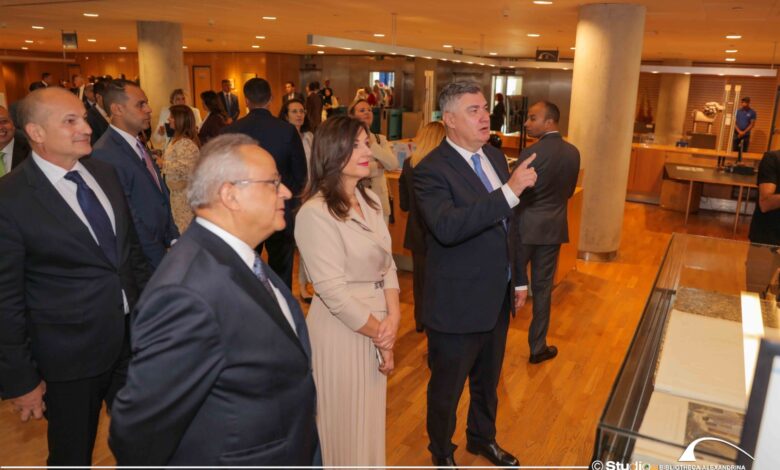 وخلال الزيارة، افتتح الرئيس الكرواتي وحرمه معرضًا بعنوان “أصداء مصرية: تماثيل أبو الهول في كرواتيا”، الذي تنظمه مكتبة الإسكندرية من خلال متحف الاثار التابع لقطاع التواصل الثقافي، وبالتعاون مع سفارة جمهورية كرواتيا بالقاهرة، بمناسبة ذكرى تدشين العلاقات الثنائية المصرية الكرواتية.