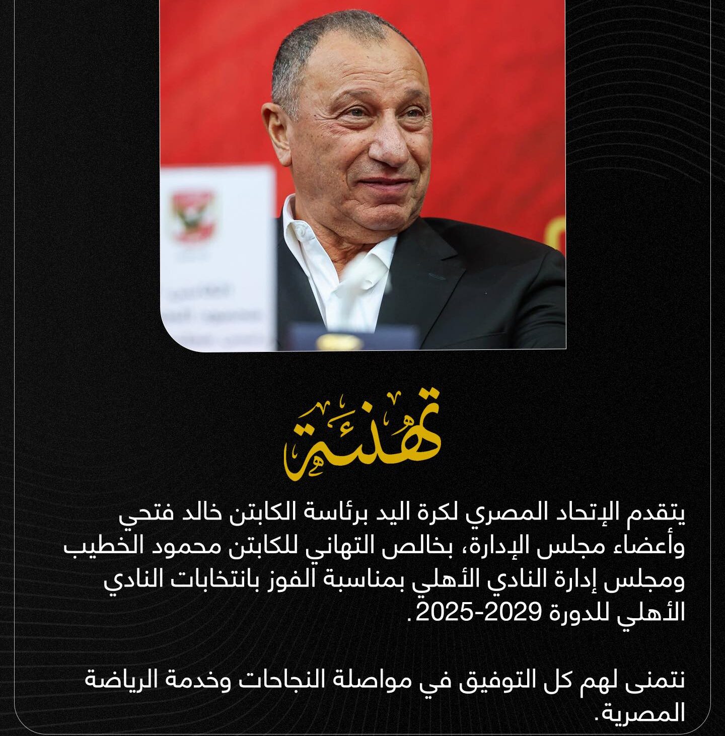من جانبه، قرر مجلس إدارة النادي الأهلي، برئاسة محمود الخطيب، تكليف محمد الغزاوي، عضو مجلس الإدارة، برئاسة بعثة الفريق الأول لكرة اليد في بطولة السوبر المصري بالإمارات المقرر لها يوم 12 نوفمبر الجاري.