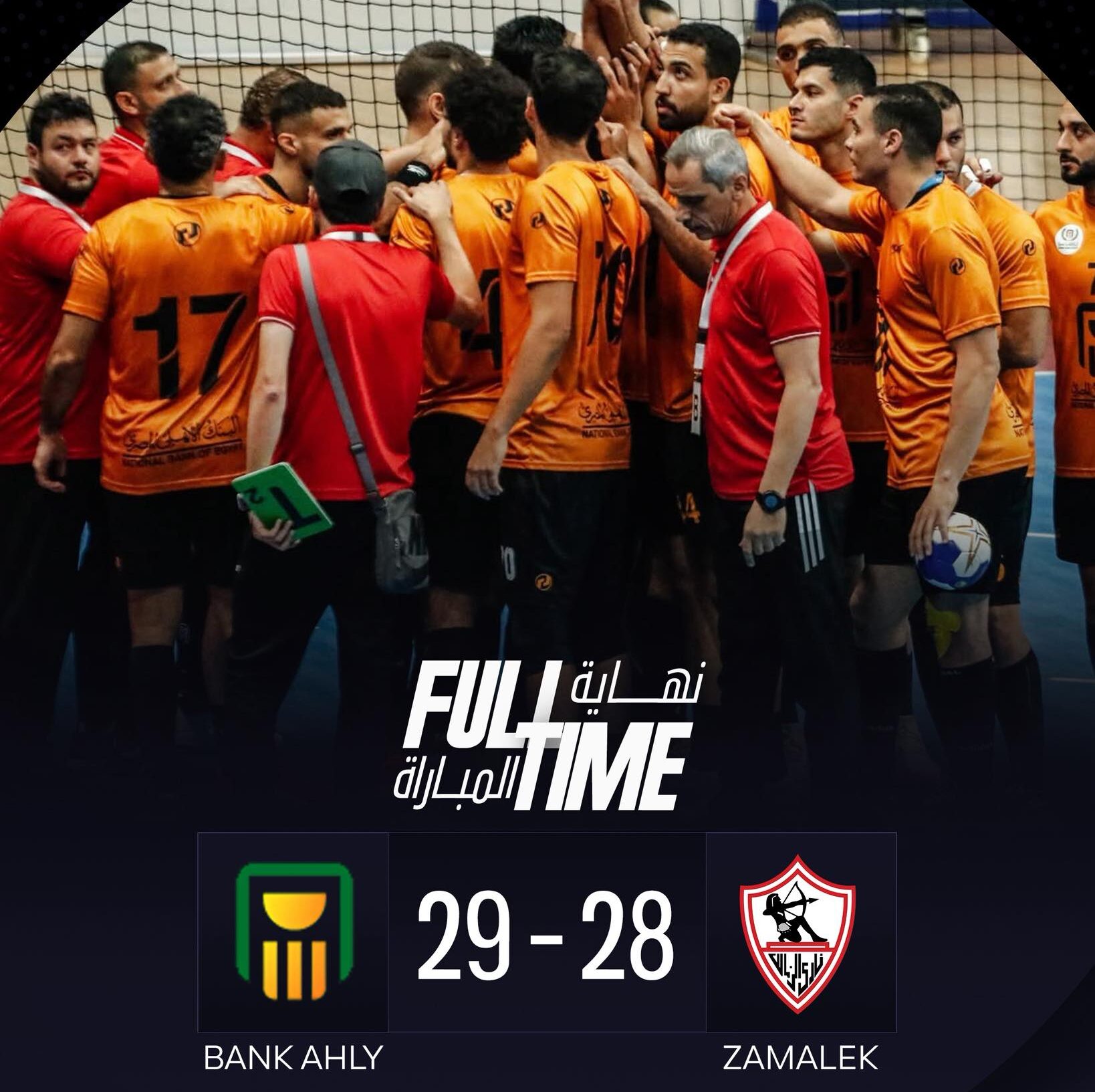 حقق فريق كرة اليد رجال بنادي البنك الأهلي بقيادة، آسر القصبي، مفاجأة جديدة بتحقيق الانتصار علي نظيره الزمالك بفارق هدفاً (29/28) ملحقاً به الخسارة الثانية توالياً بعد تفوق سموحة السكندري في نصف نهائي كاس السوبر الأربعاء الماضي (29/28) أيضاً، وذلك ضمن منافسات الجولة الثانية عشر من دوري المحترفين لكرة اليد رجال.