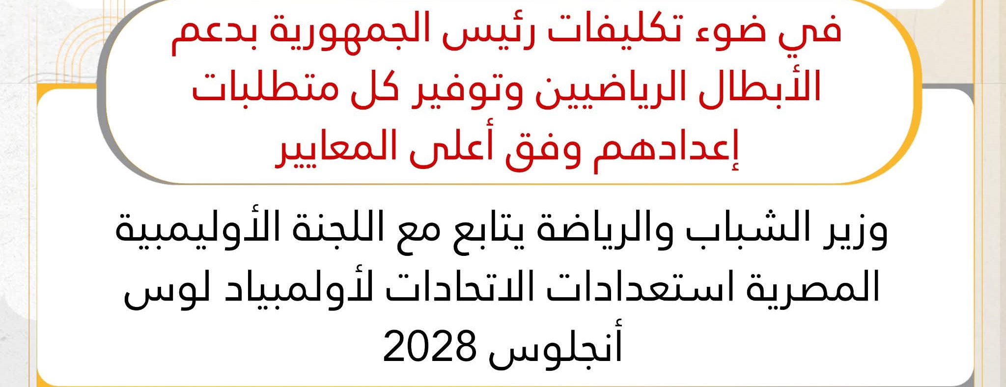 تابع الدكتور أشرف صبحي، وزير الشباب والرياضة، مع مجلس إدارة اللجنة الأوليمبية المصرية، مستجدات استعدادات الاتحادات الرياضية لدورة الألعاب الأوليمبية «لوس أنجلوس 2028»، وذلك في إطار تنفيذ توجيهات رئيس الجمهورية بدعم الأبطال الرياضيين وتوفير كل متطلبات إعدادهم وفق أعلى المعايير.