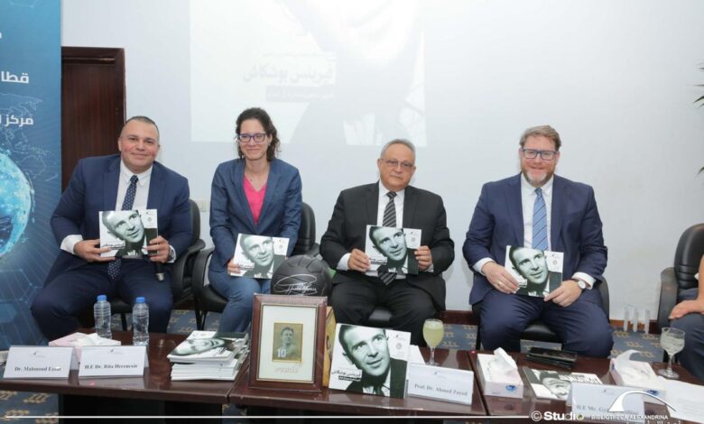 احتفلت مكتبة الإسكندرية بإصدار النسخة العربية من الكتاب التذكاري للأسطورة المجرية لاعب كرة القدم فيرينتس بوشكاش، اليوم الأربعاء، في مقر مركز توثيق التراث الحضاري والطبيعي التابع لمكتبة الإسكندرية بالقرية الذكية، بحضور الأستاذ الدكتور أحمد عبدالله زايد؛ مدير مكتبة الإسكندرية، والدكتورة ريتا هيرنشار؛ سفيرة المجر لدى جمهورية مصر العربية، ومؤلف الكتاب جورجي زولوشي؛ رئيس مؤسسة بوشكاش الدولية لكرة القدم والسفير المكلف من رئيس الجمهورية المجري للحفاظ على تراث بوشكاش، وجيرجلي كوفاكس؛ رئيس دار النشر المجرية، قدمها الدكتور محمود عزت؛ مدير مركز الدراسات الاستراتيجية بالمكتبة، ومشاركة وفد من كبار الصحفيين والإعلاميين من جمهورية المجر.