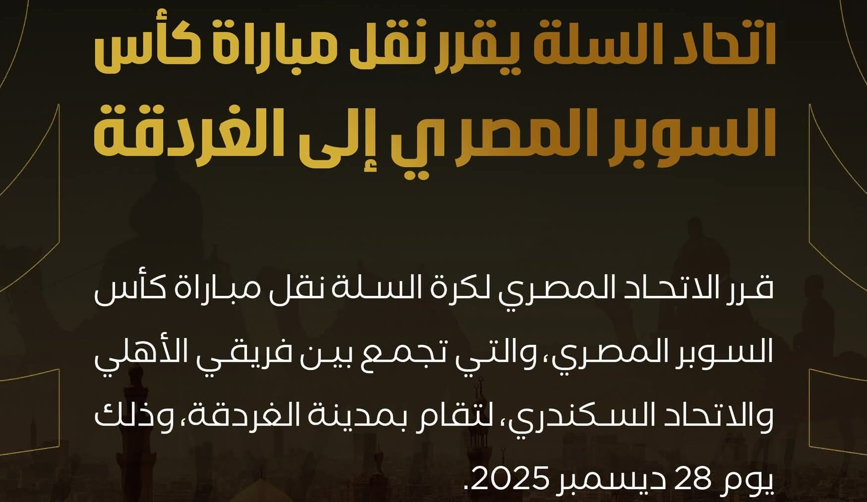 قرر اتحاد كرة السلة المصري، نقل مباراة عملاقي كرة السلة المصرية ناديي الأهلي والاتحاد السكندري المقرر لها 28 ديسمبر المقبل، في كأس السوبر المصري إلى صالة الغردقة المغطاة.
