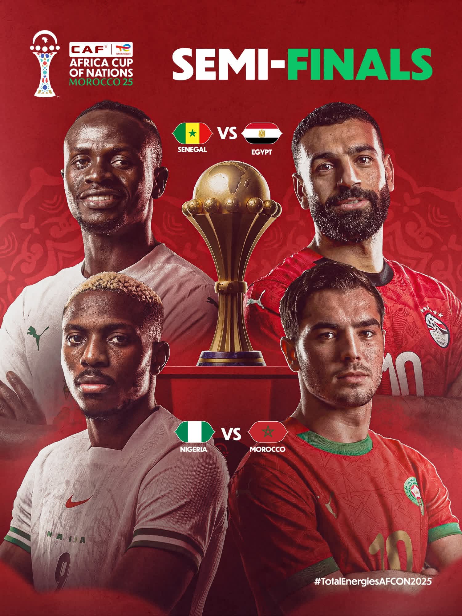 يشار إلى أن مصر ستواجه السنغال مساء الأربعاء المقبل، في نصف نهائي أمم أفريقيا، بينما يواجه منتخب المغرب، نيجيريا في نصف النهائي الآخر للبطولة.