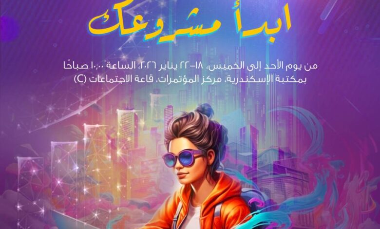 تنظم مكتبة الإسكندرية من خلال برنامج دراسات المرأة والتحول الاجتماعي التابع لقطاع البحث الأكاديمي، بالتعاون مع جهاز تنمية المشروعات المتوسطة والصغيرة ومتناهية الصغر، ورشة عمل بعنوان «ابدأ مشروعك» خلال الفترة من 18-22 يناير 2026، وهي مخصصة للفتيات الطموحات الراغبات في دخول عالم ريادة الأعمال.