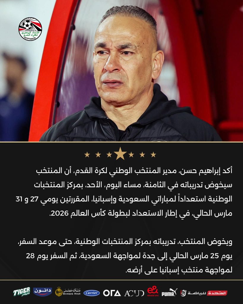 ويخوض منتخب مصر، مباراتين وديتين أمام السعودية وإسبانيا يومي 27 و 31 مارس الحالي في إطار الاستعداد لكأس العالم 2026.