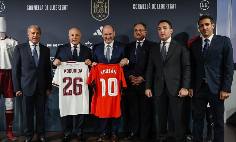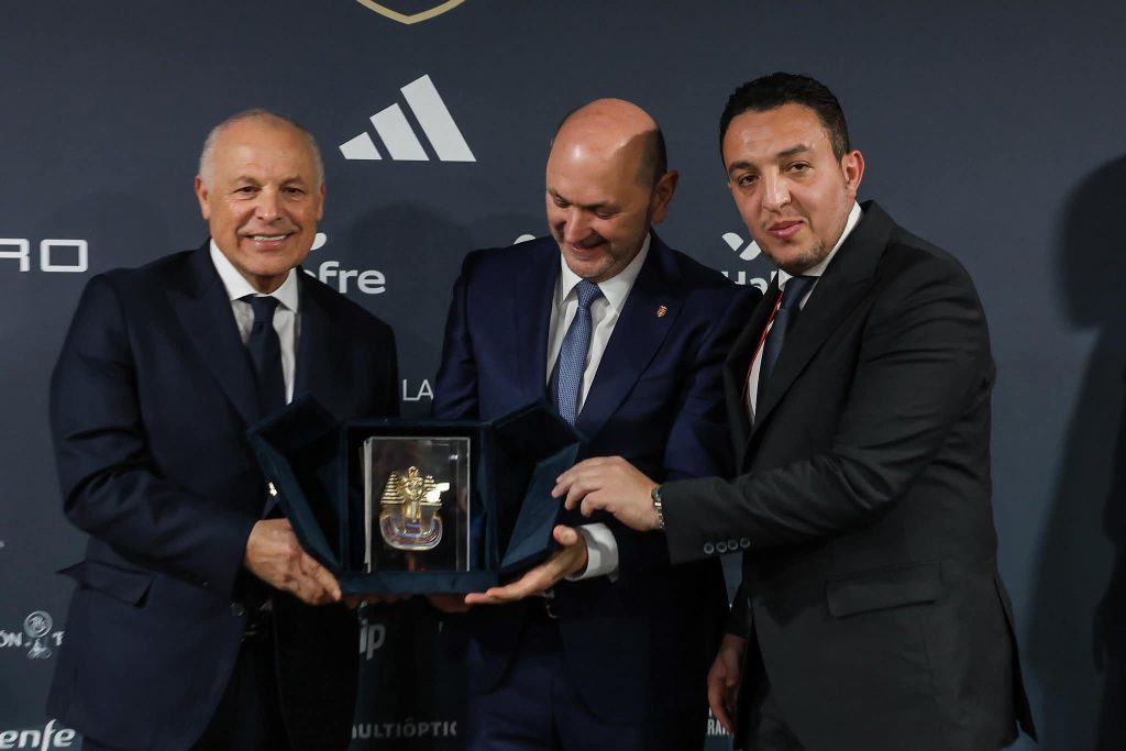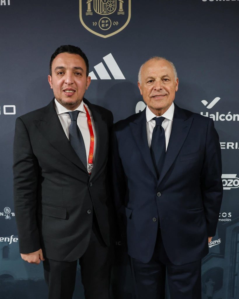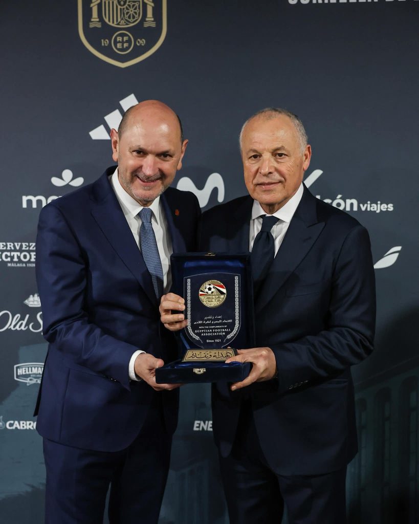 أهدى المهندس هاني أبوريدة، رئيس الاتحاد المصري لكرة وأعضاء مجلس إدارة الاتحاد، درعاً تذكارية لرافائيل لوزان أبال، رئيس الاتحاد الإسبانى لكرة القدم، وذلك على هامش المباراة الودية بين منتخبي مصر وإسبانيا، التي أقيمت الثلاثاء، بملعب «آر سي دي إي» في كورنيلا إل برات، بمدينة برشلونة، ضمن استعدادات المنتخبين للمشاركة فى بطولة كأس العالم 2026 والتي تستضيفها الولايات المتحدة وكندا والمكسيك.