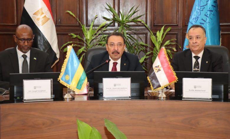 القائم بأعمال رئيس جامعة الإسكندرية يستقبل وزير التعليم الرواندي وسفير رواندا